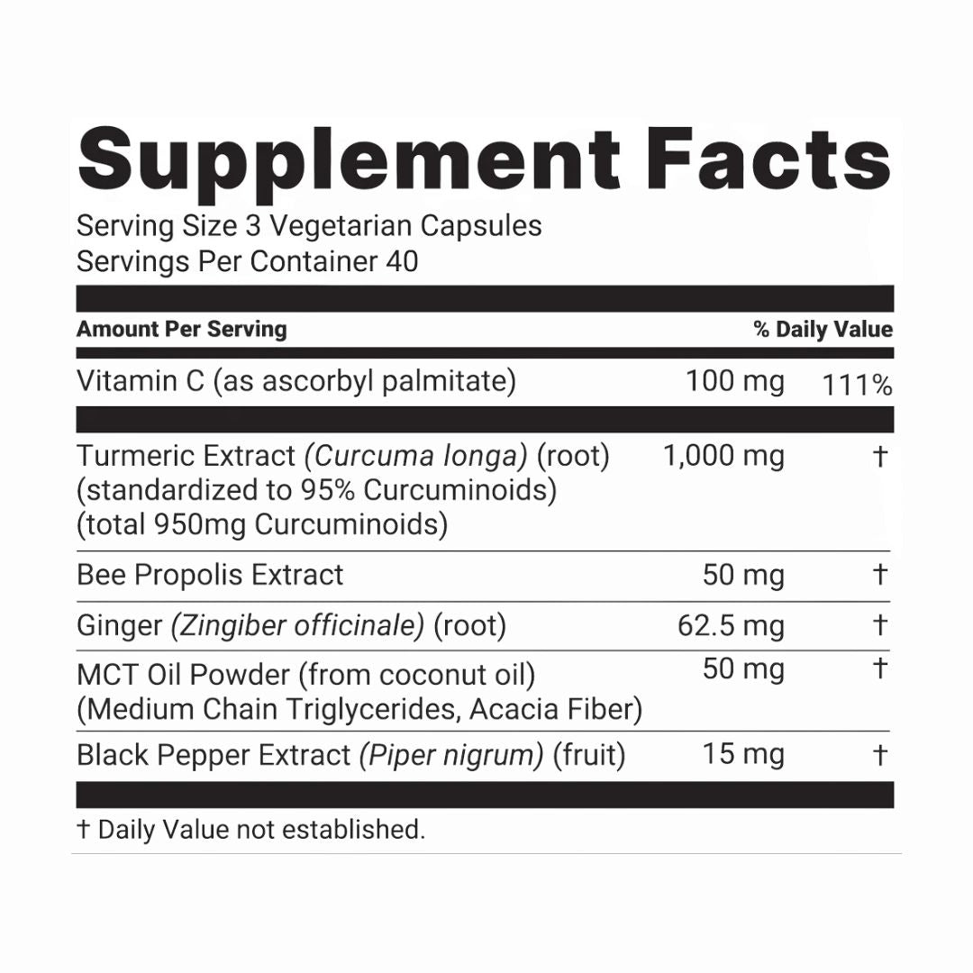Fórmula natural de cúrcuma 95% + pimienta negra para apoyar la absorción.